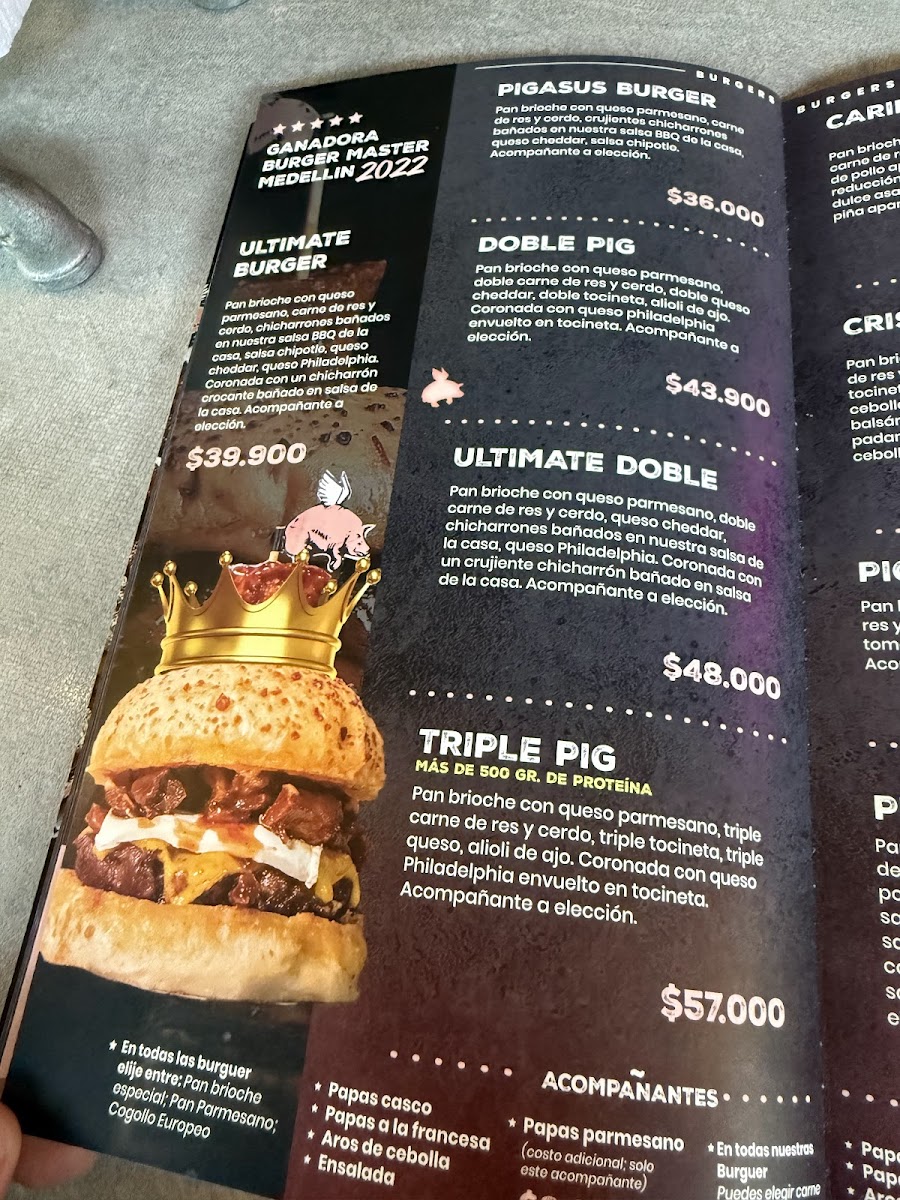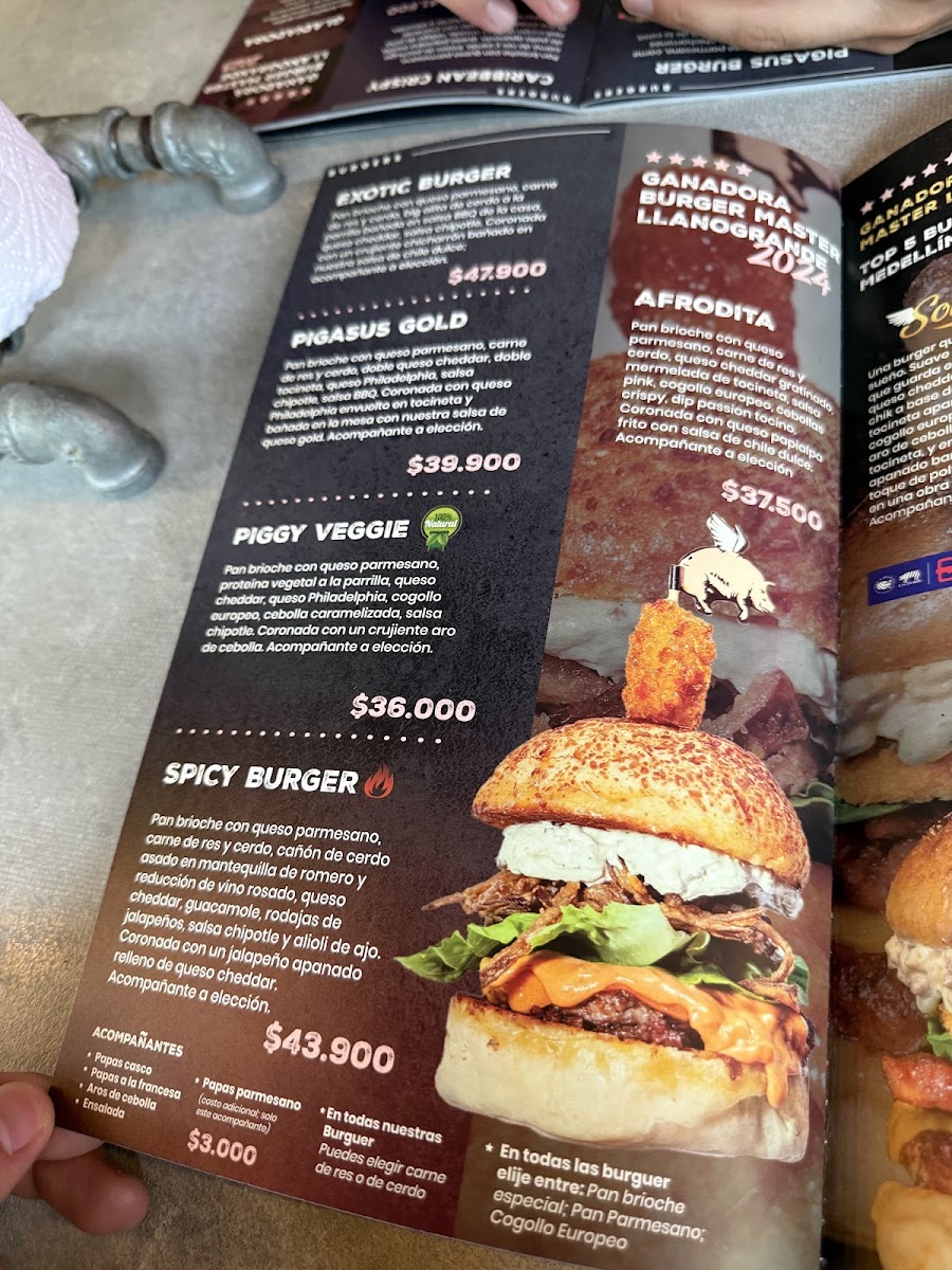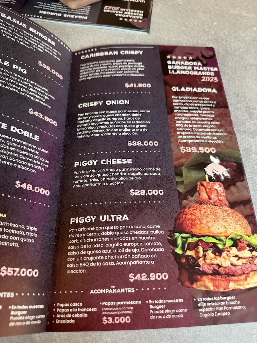 Pigasus pig & Burgers Laureles stands out in Medellín’s vibrant burger scene with its award-winning creations and warm hospitality. Located conveniently on Cl. 41A, this hamburger joint combines quality ingredients with a cozy atmosphere on its second floor. The menu shines with their signature burgers, including the celebrated 2022 and 2023 award winners, praised for their rich flavors and perfectly crafted buns.